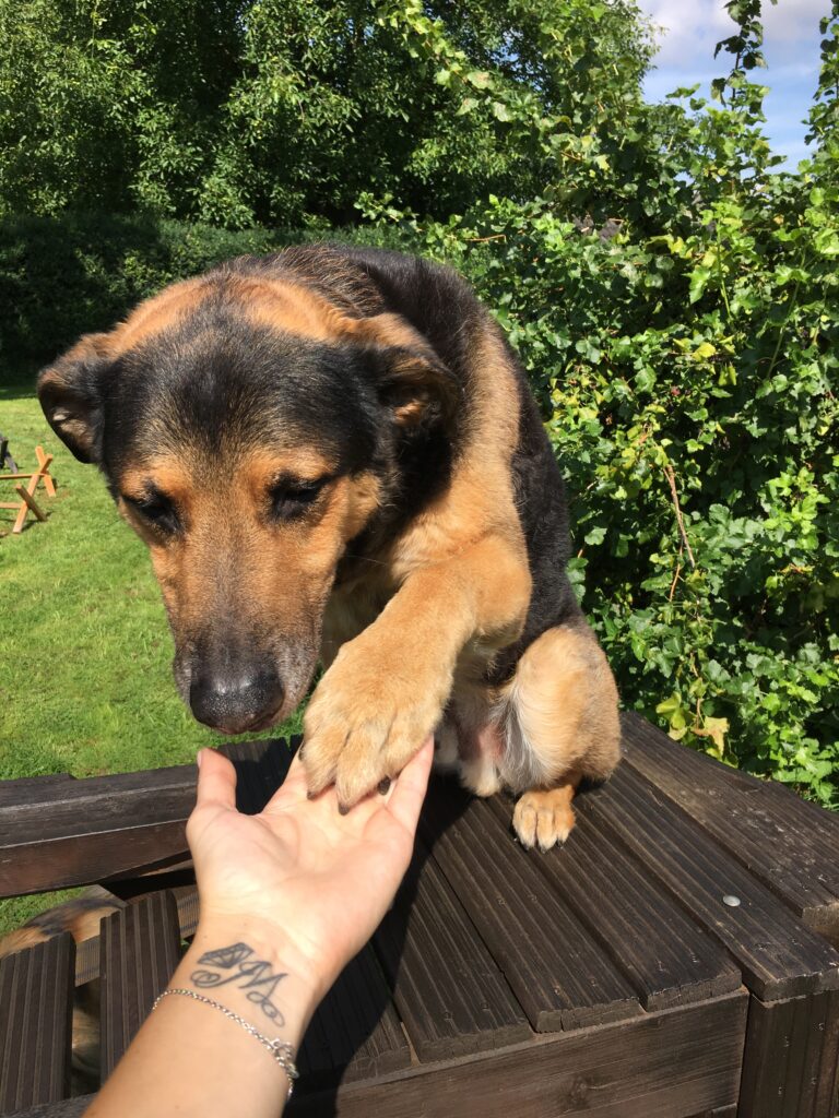- Sollte dein Hund auch nach vielen versuchen nicht selbstständig die Pfote heben, versuche ihn mit einem Leckerchen zu locken. Halte dazu ein Leckerli in deiner Hand versteckt. Halte die Hand vor den Hund. Dein Hund wird versuchen an das Leckerli heran zu kommen. Irgendwann wird er versuchen mit der Pfote an das Leckerli zu kommen und legt diese auf deine Hand.